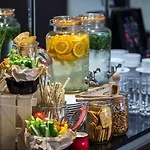 Um pequeno-almoço vegetariano está disponível mediante pedido. O restaurante a la carte Marysienka serve uma variedade de pratos, incluindo cozinha polonesa. Tem também um lounge bar que apresenta salão, e serve bebidas leves. Pode visitar a pizzaria por perto e saborear a cozinha italiana.